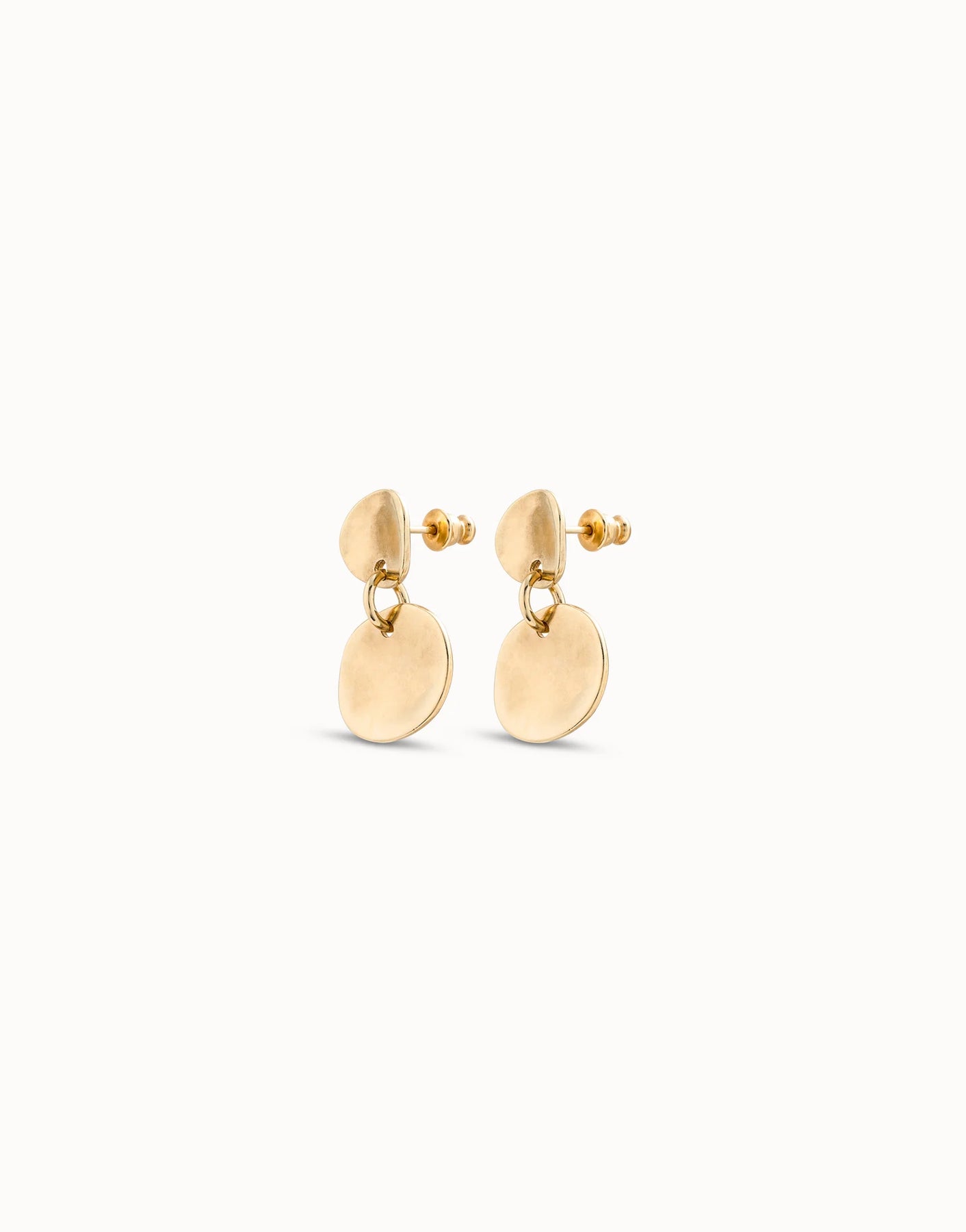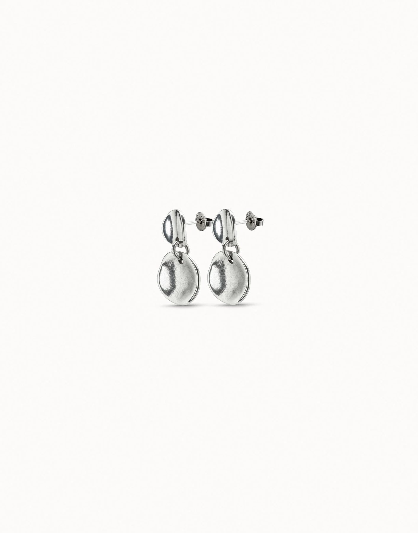Sculptural and effortlessly chic, the Uneven Orbit Drop Earrings bring a modern, artistic edge to your jewelry collection. Designed by UNOde50, these earrings feature two organic, uneven round shapes connected by a delicate hoop for a look that feels both bold and refined.