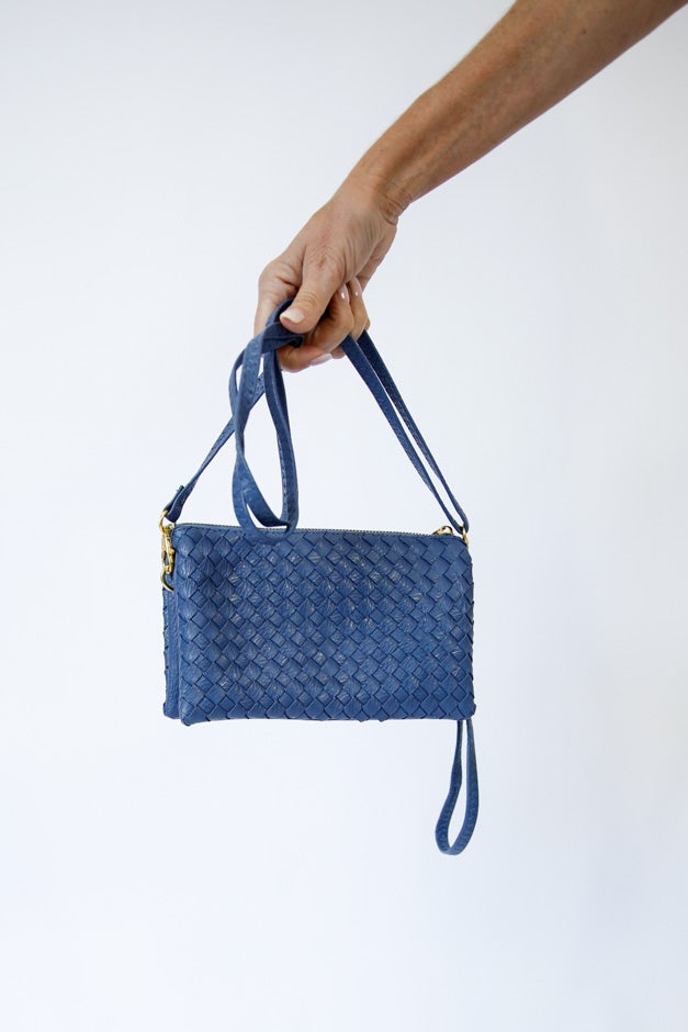 Channel timeless resort glam with the Santorini Luxe Woven Crossbody—your go-to for island hopping or rooftop cocktails. With a rich woven texture and chic gold-tone hardware, this beauty blends fashion and function effortlessly. Whether you carry it by the wristlet for a dressed-up moment or sling it crossbody for daytime ease, this bag is all about versatility with a luxe twist.