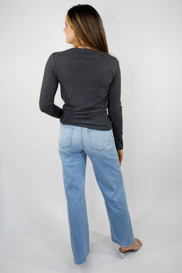 The Wide Neck Long Sleeve Knit Top, the quintessential layering essential that effortlessly combines comfort and style. Crafted from an ultra-soft material, this long-sleeve knit top is designed to provide a luxurious feel against your skin, making it a go-to piece for everyday wear.