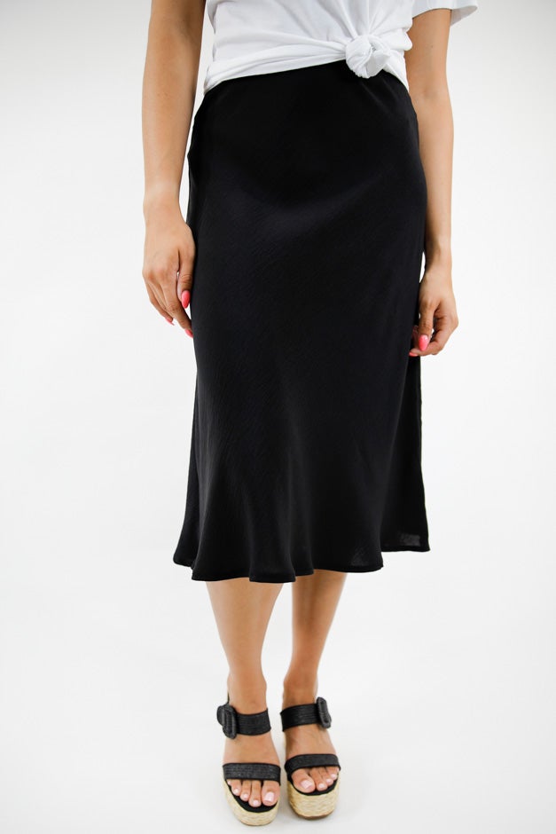 A timeless staple with effortless elegance, the Brooklyn Air Flow Midi Flare Skirt offers a flattering high-waisted silhouette with an elastic waistband for comfort. Crafted from a breathable, lightweight fabric, this midi-length skirt flows beautifully with every movement, creating a soft and graceful look. The subtle flare adds an extra layer of sophistication, making it perfect for both casual outings and dressier occasions. Pair it with a tucked-in blouse and heels for a polished look or style it with a simple tee and sneakers for an easygoing, chic ensemble.