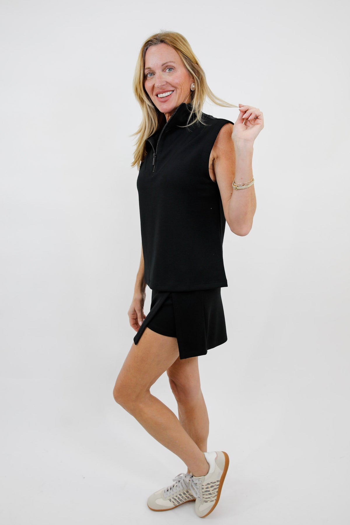 Style it with an oversized tee, a fitted tank, or a matching active jacket for an easy, pulled-together look. From errands and travel days to casual lunches and walks around town, this skort moves with you while keeping things chic and comfortable.