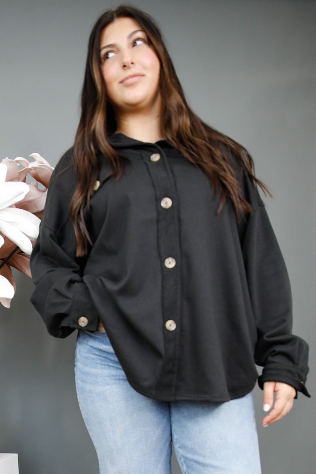 For the days when your look needs that little something extra—the Street Scene Shacket delivers casual polish with street-smart charm. Made from soft French terry knit, this versatile layer brings cozy structure with a sporty edge. The oversized silhouette pairs perfectly with biker shorts, denim, or over a mini for a cool, off-duty vibe.