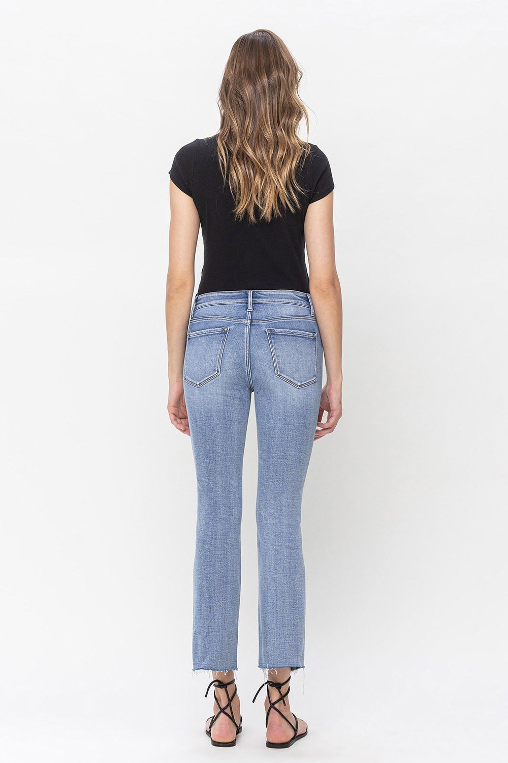 Crafted from comfort stretch denim, these jeans offer the perfect balance of flexibility and structure for all-day wear. With their mid-rise waist and cropped length, they flatter your figure and elongate your silhouette. The distressed detailing adds a touch of edgy sophistication, while the raw hem lends a modern twist. Embrace versatility with the kick flare design, perfect for pairing with your favorite boots or heels. Elevate your denim game with these must-have jeans that seamlessly blend comfort and fashion-forward flair