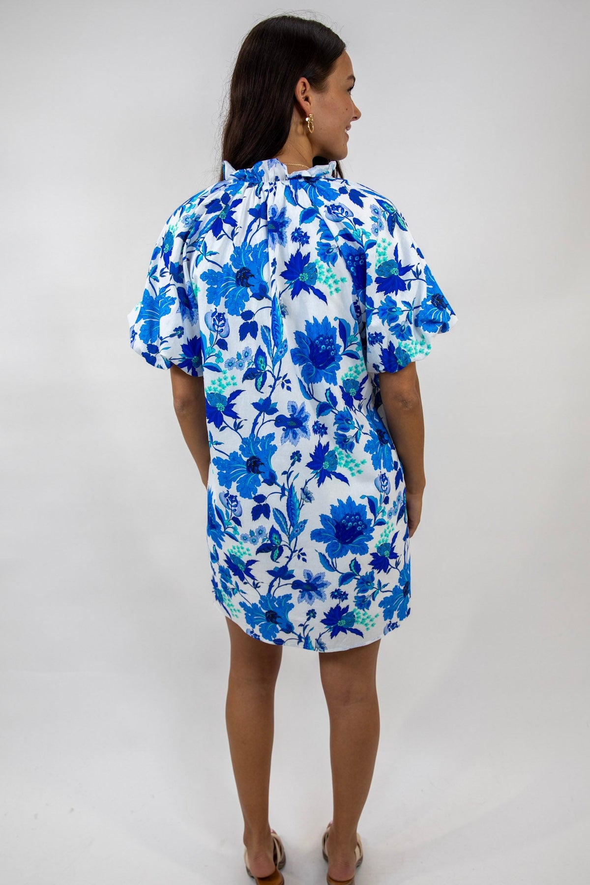 This one feels like instant summer polish. The Harborview Bloom Dress features a crisp ivory base with vibrant blue floral artwork that pops in all the right ways. The deep V-neckline is framed with bold contrast trim, giving it that elevated, boutique feel while still staying easy and wearable.